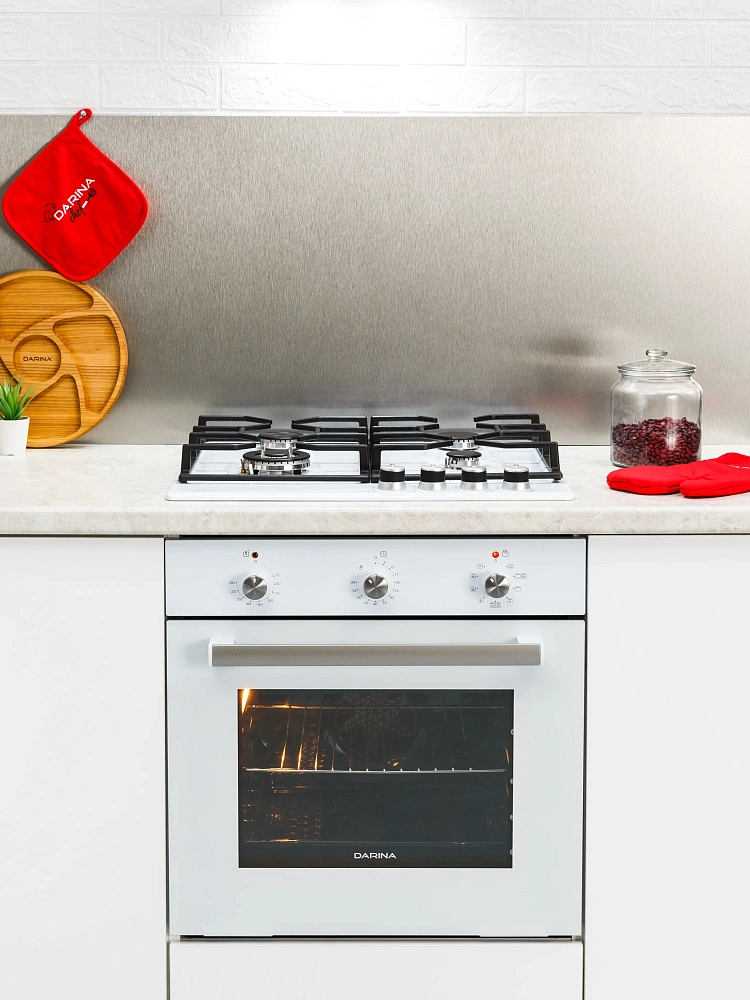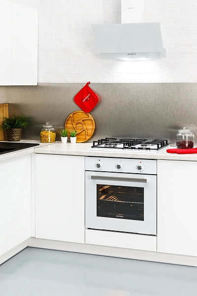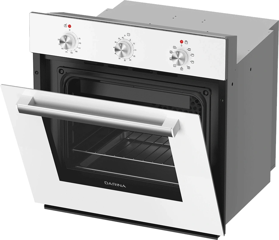 Объем духового шкафа в 50 литров позволяет готовить несколько блюд одновременно на четырех уровнях решетчатых направляющих.