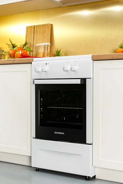 Объем духового шкафа в 45 литров позволяет готовить несколько блюд одновременно на четырех уровнях решетчатых направляющих.