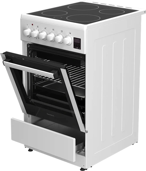 Объем духового шкафа в 50 литров позволяет готовить несколько блюд одновременно на четырех уровнях решетчатых направляющих.