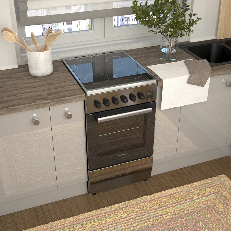 Объем духового шкафа в 50 литров позволяет готовить несколько блюд одновременно на четырех уровнях решетчатых направляющих.