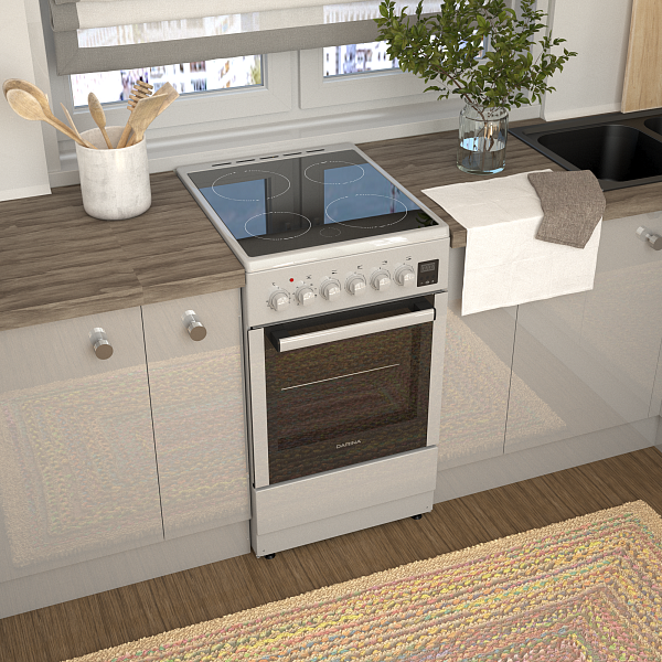 Объем духового шкафа в 50 литров позволяет готовить несколько блюд одновременно на четырех уровнях решетчатых направляющих.