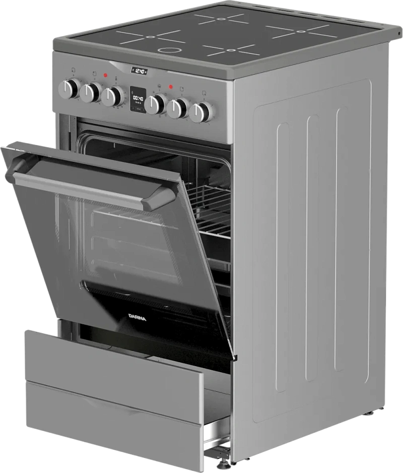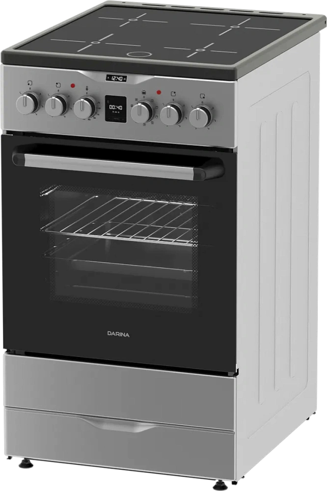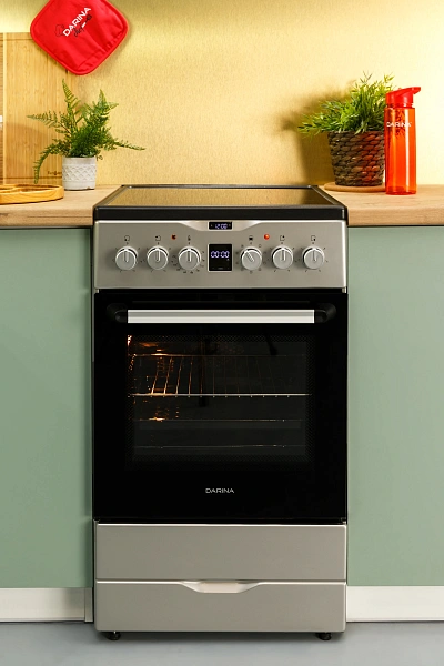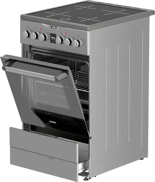 Объем духового шкафа в 50 литров позволяет готовить несколько блюд одновременно на четырех уровнях решетчатых направляющих.