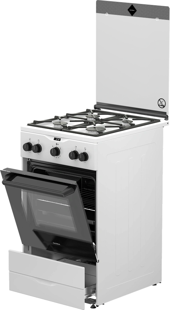 Объем духового шкафа в 50 литров позволяет готовить несколько блюд одновременно на четырех уровнях решетчатых направляющих.