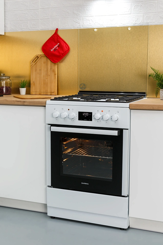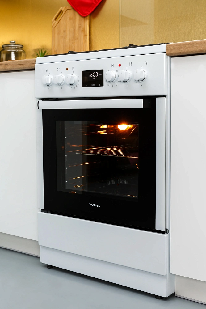Объем духового шкафа в 50 литров позволяет готовить несколько блюд одновременно на четырех уровнях решетчатых направляющих.