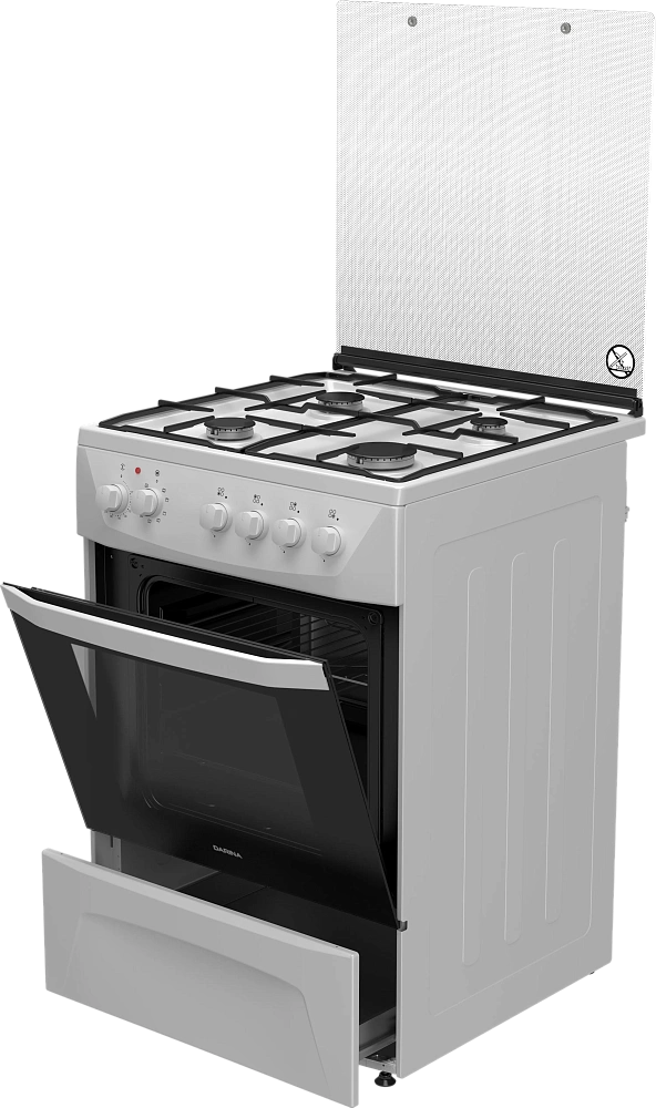 Объем духового шкафа в 50 литров позволяет готовить несколько блюд одновременно на четырех уровнях решетчатых направляющих.