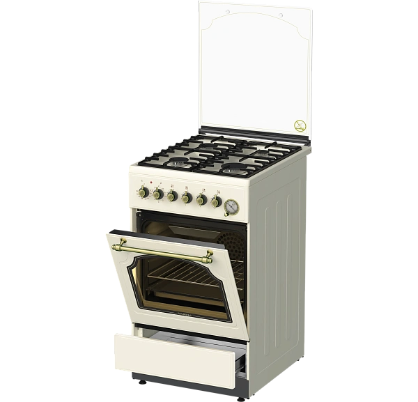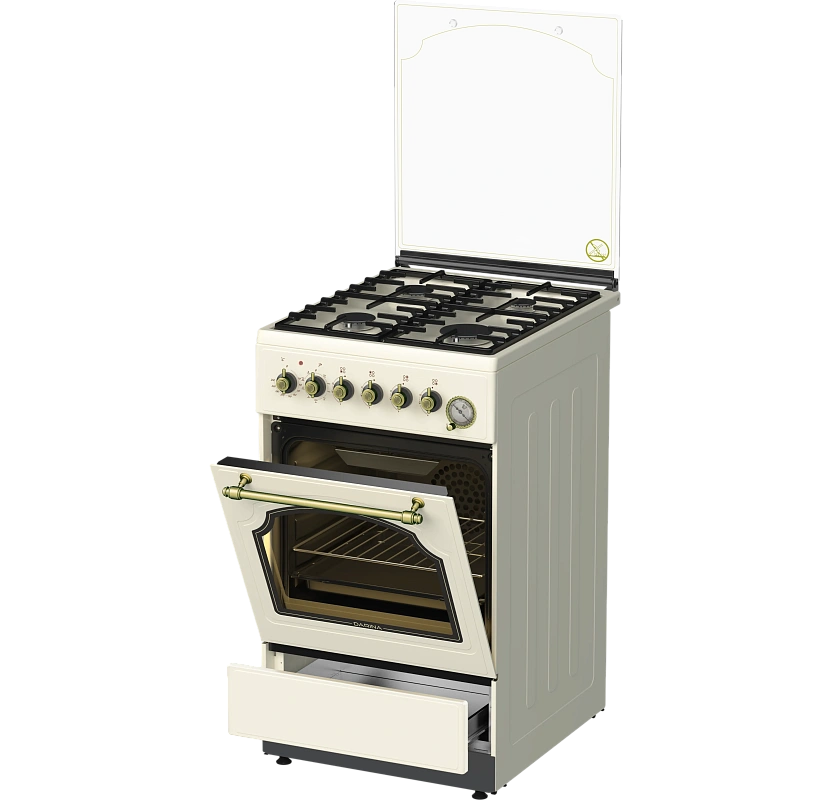 Объем духового шкафа в 50 литров позволяет готовить несколько блюд одновременно на четырех уровнях решетчатых направляющих.