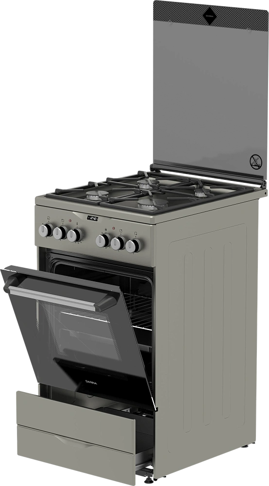 Объем духового шкафа в 50 литров позволяет готовить несколько блюд одновременно на четырех уровнях решетчатых направляющих.